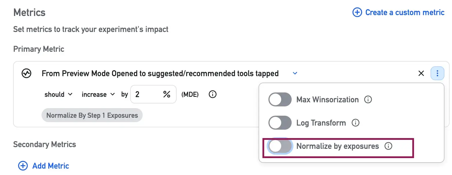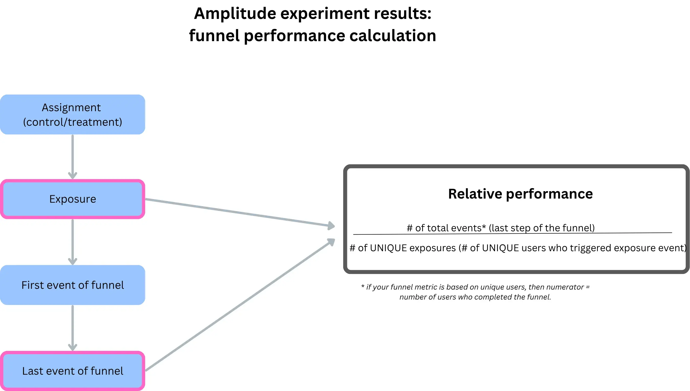 As a result of these discussions, Amplitude introduced an option to compute experiment results using the number of funnel starts as the denominator, instead of the number of exposed users: all we need to do is to toggle off the “normalize by exposure” setting. This only works for experiments, not for feature flags who have not been converted to experiments. (I can't wait for this confusion to end !)