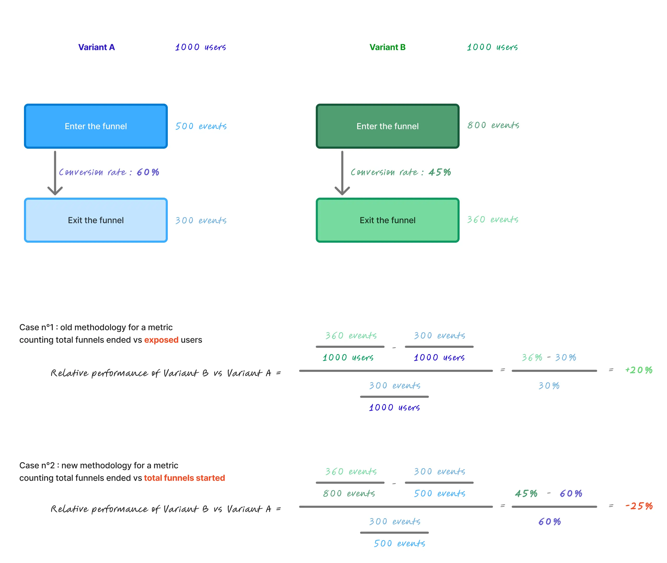 This does not mean one denominator is universally better — it means that the default exposed-user denominator did not align with Photoroom’s product optimization goals.